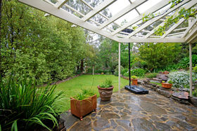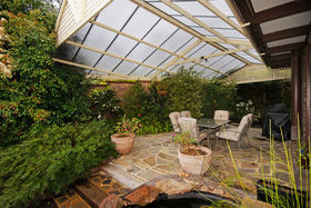 Outdoor entertaining will be a pleasure all year round with a large covered pitched roof pergola surrounded by flowering camellias and shade loving plants. A great place to sit and relax come rain or shine.